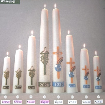 Onze diaconie heeft voor de Paaskaars van het seizoen 2026/2027 gekozen voor het prachtige motief ‘Levensboom’. Je kunt dit motief ook voor jezelf bestellen, maar er zijn daarnaast nog vijf andere schitterende motieven beschikbaar bij Boca Kaarsen uit Almere, waar we onze kaarsen altijd bestellen.